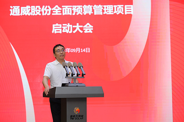 為實現戰略可視、分析自動、預測聯動、管控彈性,建立國際一流、業財一體、體系一致的全覆蓋、可拓展的全面預算管理平臺,9月14日,通威股份全面預算管理項目啟動大會在通威太陽能雙流基地隆重召開,通威股份光伏首席技術官邢國強、財務總監周斌、信息總監周勇出席會議,通威太陽能副總經理宋梟、通威股份財務部部長甘露以及項目實施方賽意信息中國區總裁劉國華、賽意信息西南區總經理鐘華弢等領導出席會議,通威股份各經營主體下的各基地負責人及業務代表現場或視頻參會。