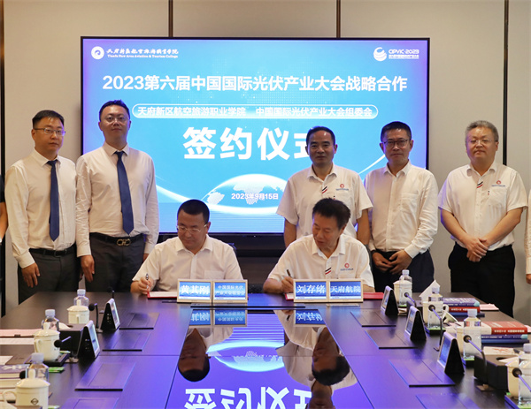 11月13-16日,2023第六屆中國(guó)國(guó)際光伏產(chǎn)業(yè)大會(huì)將在四川成都隆重舉行。作為我國(guó)西部首個(gè)國(guó)際光伏盛會(huì),大會(huì)各項(xiàng)籌備工作正緊張有序推進(jìn)中,屆時(shí)海內(nèi)外重要領(lǐng)導(dǎo)、重磅嘉賓、行業(yè)大咖及全球光伏行業(yè)龍頭企業(yè)將聯(lián)袂出席大會(huì)。為進(jìn)一步強(qiáng)化和提升大會(huì)后勤接待及禮儀服務(wù)等工作,9月15日,天府新區(qū)航空旅游職業(yè)學(xué)院(以下簡(jiǎn)稱天府航院)與大會(huì)組委會(huì)戰(zhàn)略合作簽約儀式成功舉行。通威集團(tuán)黨委書記、集團(tuán)副總裁黃其剛,天府航院院長(zhǎng)劉存緒、常務(wù)副院長(zhǎng)魯飛、副院長(zhǎng)劉勝輝,通宇物業(yè)常務(wù)副總經(jīng)理張杲等出席儀式。