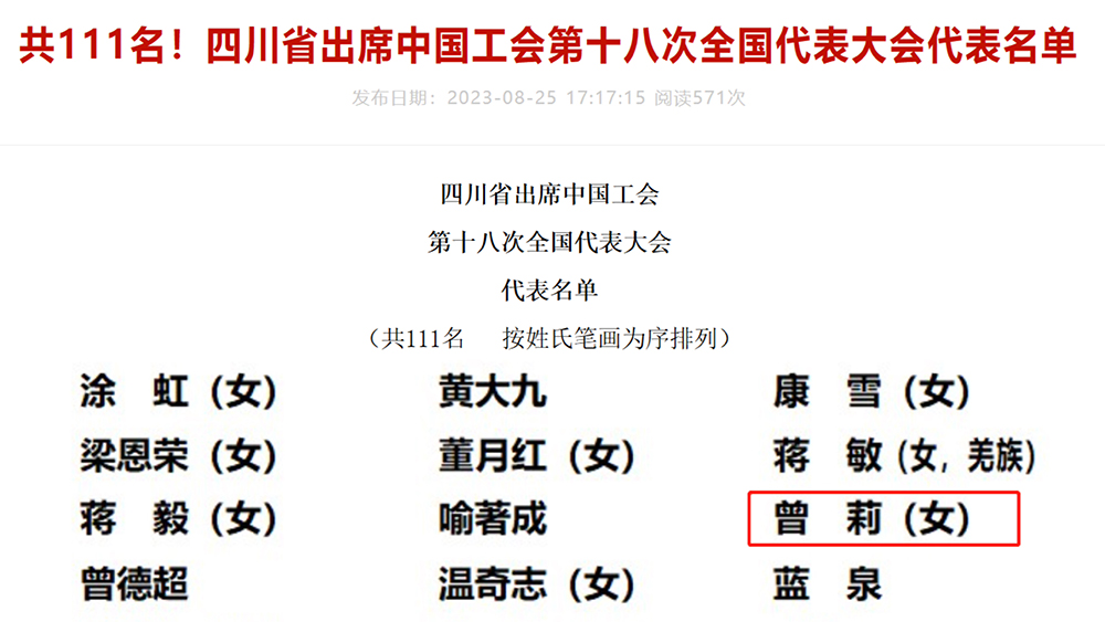 近日,四川省總工會公布了四川出席中國工會第十八次全國代表大會的代表,來自通威太陽能眉山基地電池質量部的曾莉入列名單。作為一名基層一線代表,2023年下半年,曾莉將前往北京出席中國工會第十八次全國代表大會。