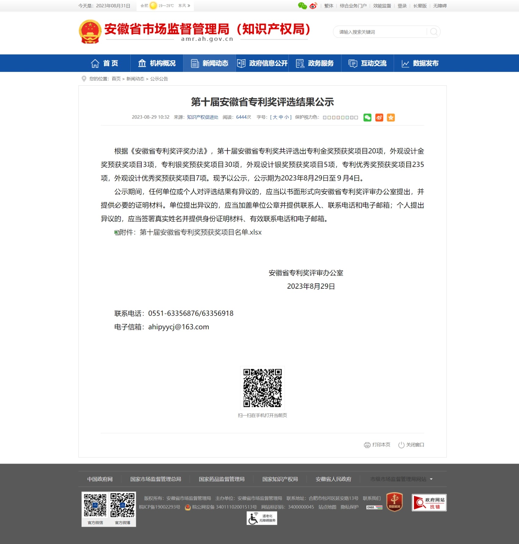 安徽省市場監督管理局(知識產權局)官網公告