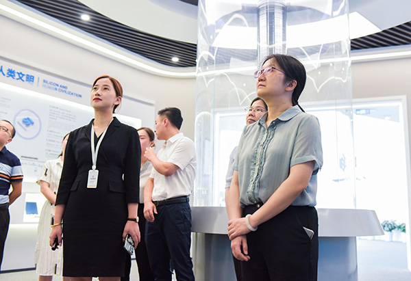 在數字體驗中心,方潔副處長詳細了解了永祥股份的產業規劃、產能規模、發展歷程、企業文化、資質榮譽、技術研發投入、產業鏈發展等情況。王總表示,在各級領導的殷切關懷和悉心指導下,永祥不斷優化技能人才發展環境,不斷完善技能人才管理機制,大力實施人才強企戰略,充分發揮技能人才作用,積極為員工搭建了培訓、培養平臺和成長通道。