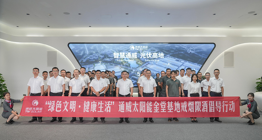 為深入開(kāi)展健康企業(yè)創(chuàng)建行動(dòng),引導(dǎo)廣大職工培養(yǎng)和樹(shù)立健康文明的生活方式,8月29日,通威太陽(yáng)能金堂基地黨支部聯(lián)合公司安全環(huán)境部共同發(fā)起“戒煙限酒”主題倡導(dǎo)行動(dòng),通威太陽(yáng)能金堂基地總經(jīng)理助理龐三鳳出席活動(dòng),金堂基地管理人員及員工代表共60人共同參與。