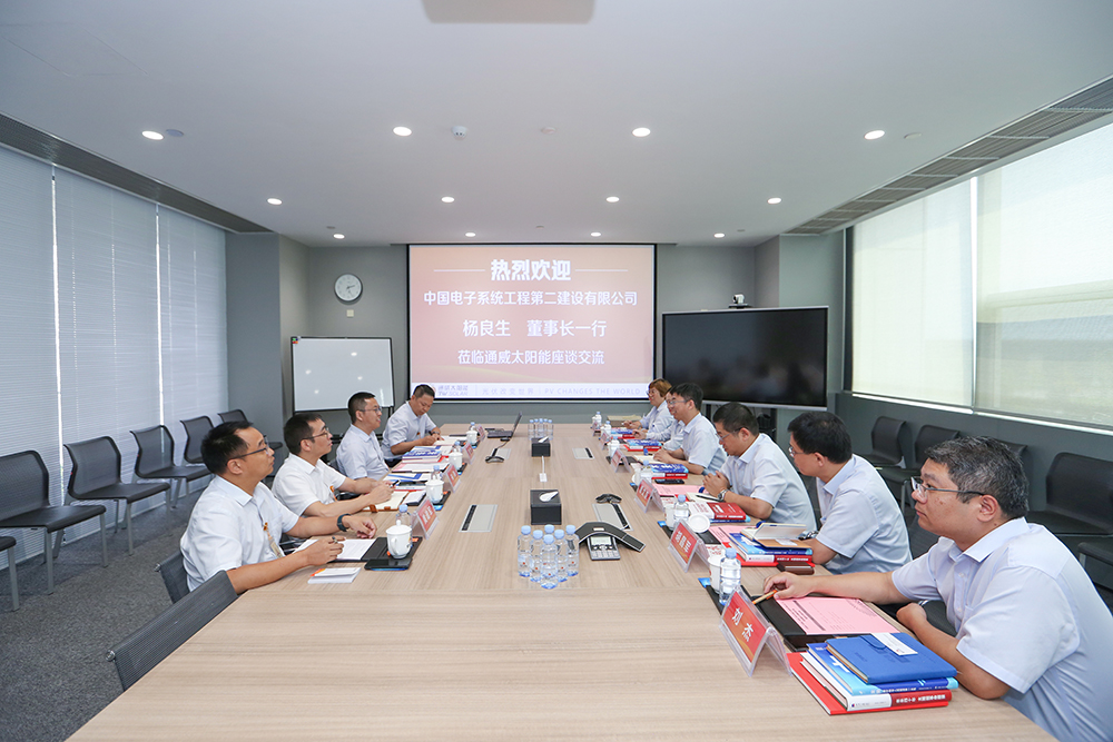 中國(guó)電子系統(tǒng)工程第二建設(shè)有限公司董事長(zhǎng)楊良生一行蒞臨通威太陽能座談交流