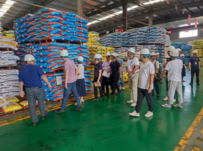 首先,蝦特料片區總經理巫勝東、陽江海壹內務總經理彭繼偉帶隊參觀陽江海壹車間,介紹通威標準化車間。