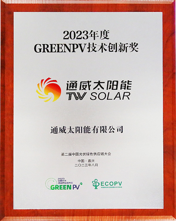 通威太陽能榮獲2023年度“GREENPV技術創新獎”