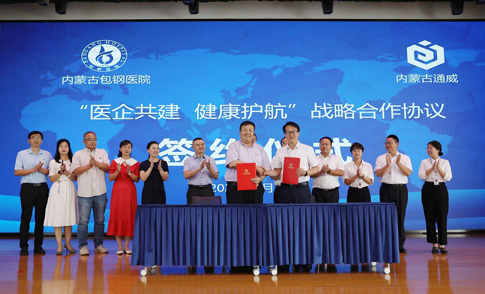 8月11日,內(nèi)蒙古通威與內(nèi)蒙古包鋼醫(yī)院組織開(kāi)展“醫(yī)企共建 健康護(hù)航”戰(zhàn)略合作協(xié)議簽約儀式。內(nèi)蒙古包鋼醫(yī)院黨委副書記、院長(zhǎng)張向群,內(nèi)蒙古包鋼醫(yī)院副院長(zhǎng)張志堅(jiān),內(nèi)蒙古包鋼醫(yī)院副院長(zhǎng)祝瑋等領(lǐng)導(dǎo)蒞臨內(nèi)蒙古通威參觀,內(nèi)蒙古通威總經(jīng)理張習(xí)松等總經(jīng)辦領(lǐng)導(dǎo)熱情接待,雙方領(lǐng)導(dǎo)參加簽約儀式。