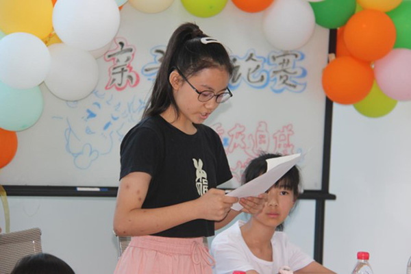 通過對比賽規則的簡單介紹后,于小會議室開展親子辯論賽,圍繞“子女堅持表達自己的想法就是叛逆嗎?”,孩子們和父母站在不同的立場上,展開了一場思維碰撞、觀點交鋒的較量。在過程中鍛煉孩子的邏輯思維和表達能力,強調無論是父母還是子女都應該尊重不同意見,站在對方立場以合理方式交流溝通,并理解正確的溝通方式對于建立良好關系的重要性。