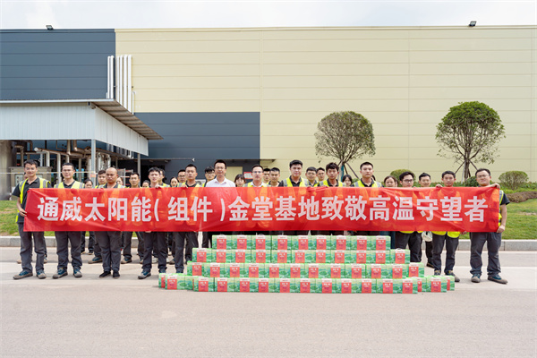 驕陽似火,酷暑難耐。為進一步做好員工防暑降溫工作,表達對員工的關心關愛,近日,通威太陽能(組件)各基地組織開展了“致敬高溫守望者”夏日送清涼慰問活動,通威股份總裁助理、通威太陽能(合肥)有限公司總經理蕭圣義以及各基地工會主席為高溫作業一線職工送去防暑降溫禮盒。