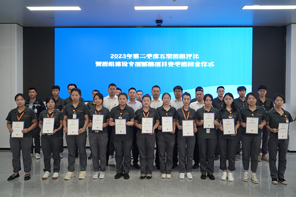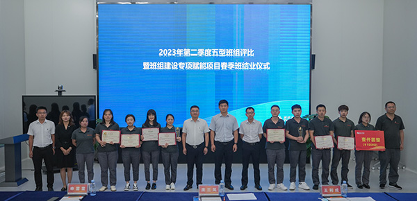活動現(xiàn)場,各廠部依據(jù)五型班組“技能型、效益型、管理型、創(chuàng)新型、和諧型”五個維度進行第二季度五型班組評比。隨后,各基地領導高度贊賞了班組建設在2023年取得的優(yōu)異成果,同時對獲獎個人及班組表達了祝賀,并鼓勵學員進一步加強自身實力,將學到的理論知識和管理經(jīng)驗積極運用到班組日常管理中,為建設高質量的五型班組添磚加瓦。