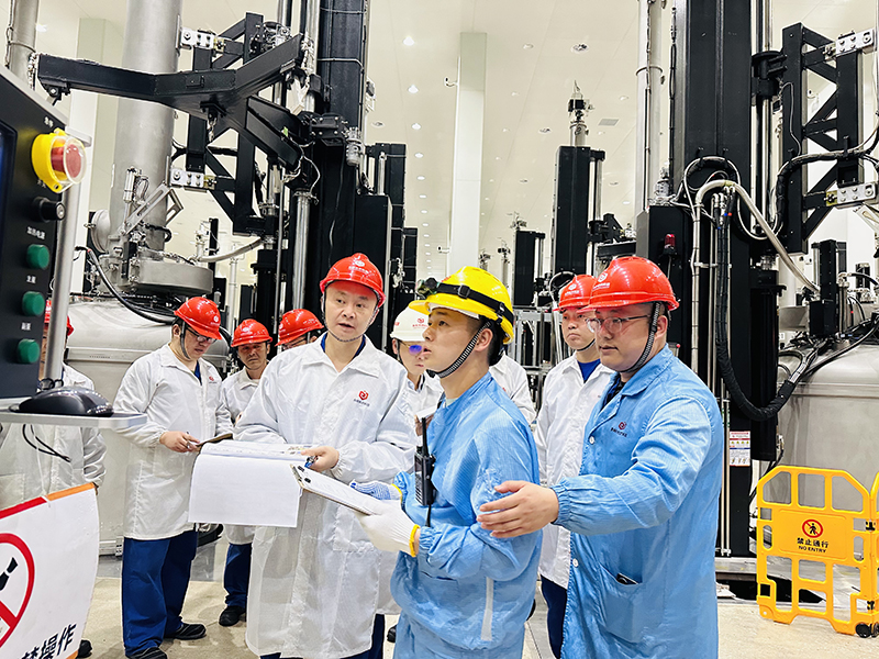 7月29日,永祥光伏科技總經理袁中華深入生產二廠作現場JCC檢查。副總經理張軍、總經理助理高俊偉、設備動力部部長周洪富、安全環境部副部長何翔及相關人員參加。