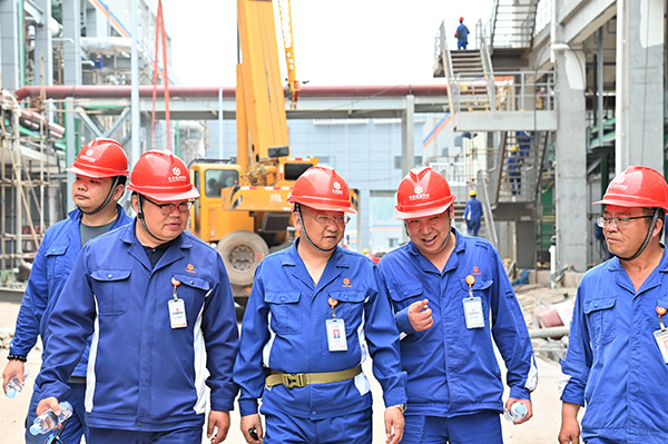 李總一行前往項目精餾、還原、冷氫化、球罐等裝置,對其開車準備情況進行了詳細了解,并對現場內部人員管理、施工單位情況、土建基礎和設備運行提出了更高的要求。李總表示,來現場感覺到最明顯的變化是“道路變好了”。項目的土建工作已在收尾,需要做好最后的保障工作,打好基礎,鞏固成果。目前生產員工已進場,一線員工需做到清楚工程情況,熟悉項目進度,熟練掌握工作內容。設備相關員工需充分利用開車前時間,做好設備的調試、檢查、維護,以最好的狀態,交最優秀的答卷,全力保障項目一次性開車成功。