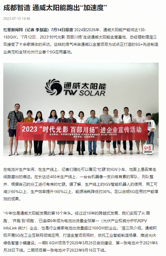 通威太陽能金堂基地接受紅星新聞網、央廣網、四川發布、成都電視臺等多家媒體聯合專訪