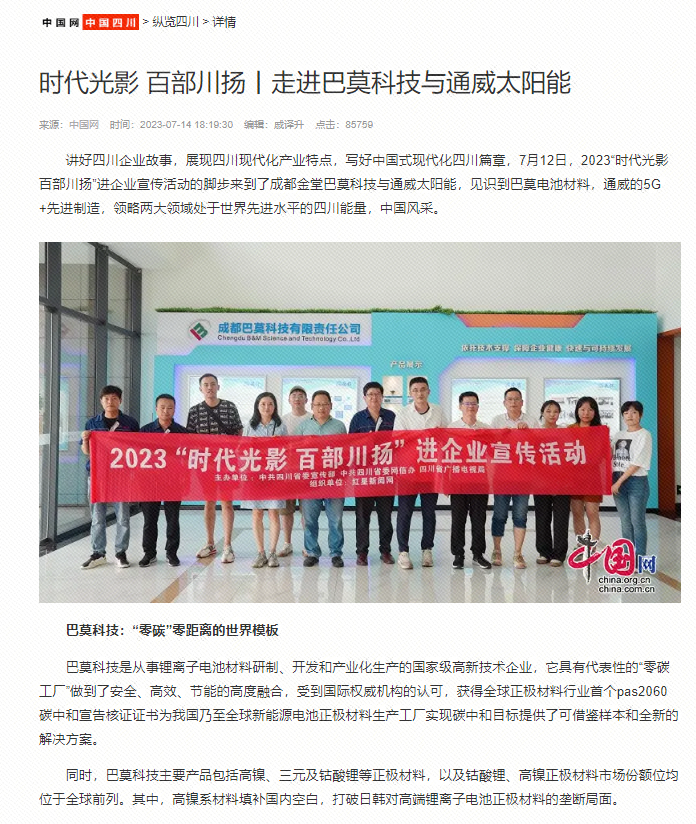 7月12日,由中共四川省委宣傳部、中共四川省委網信辦、四川省廣播電視局主辦的“時代光影 百部川揚”進企業宣傳活動在通威太陽能金堂基地進行,媒體代表團一行走進金堂基地生產一線深入參觀及采訪。