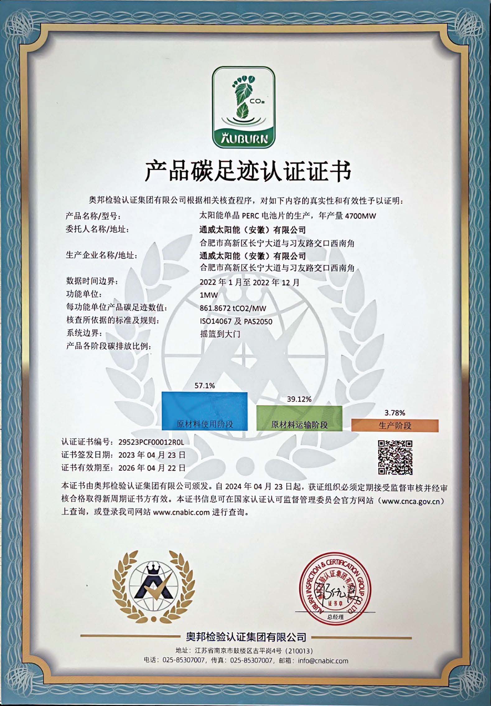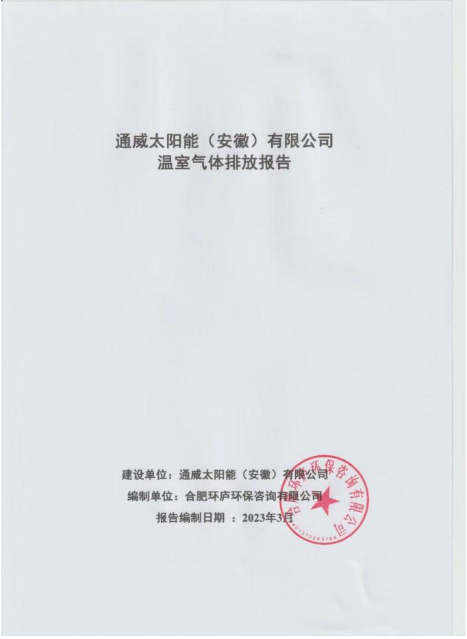 通威太陽(yáng)能(安徽)有限公司產(chǎn)品產(chǎn)品碳足跡、溫室氣體核查披露