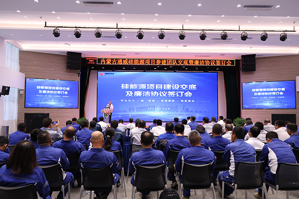 7月9日,內(nèi)蒙古通威硅能源項目參建團隊交底會暨廉潔協(xié)議簽訂儀式順利舉行,通威硅能源項目指揮長游書華,指揮長助理黃毅、武永斌,各參建單位項目負責人參加會議。會上公司領(lǐng)導與參建單位簽訂《廉潔協(xié)議》,明確打造精品工程的目標,凝聚共識,堅定信心,讓參建單位了解通威、永祥,保證各參建單位與項目指揮部思想同頻,意識共振,快速高質(zhì)量推進工程項目建設(shè)。