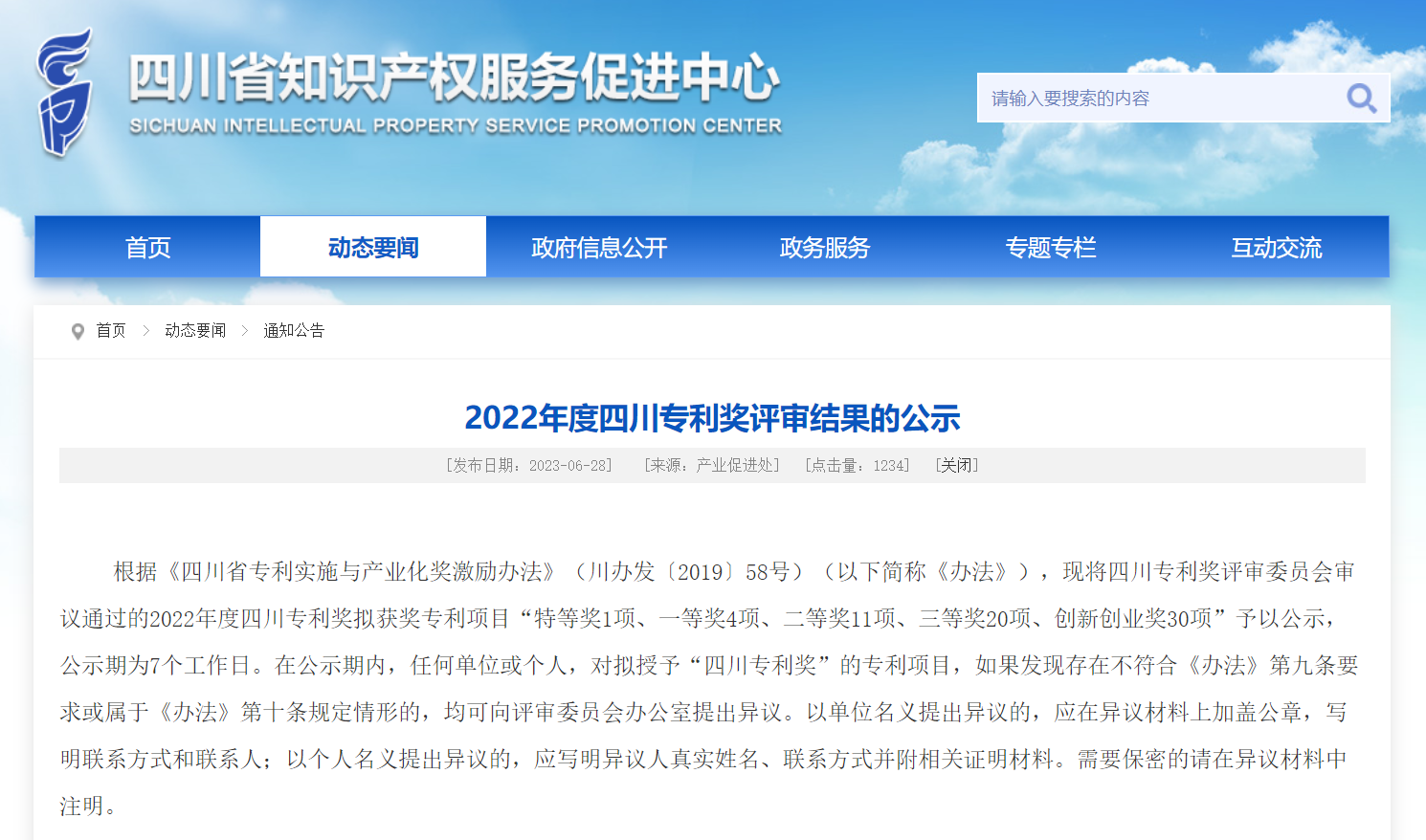 四川省知識產權服務促進中心在2023年6月27日公布了《2022年度四川專利獎評審結果的公示》(公示期為七工作日),擬對在2022年度申報的優秀專利獎項目進行推薦及表揚,光伏技術部代表通威太陽能參與該專利獎的申報、評審及答辯工作,通威太陽能憑借在技術研發創新和知識產權保護的突出表現成功獲得四川省專利獎項目一等獎的榮譽。
