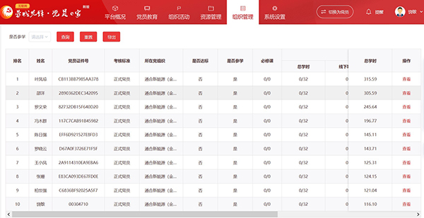蓉城先鋒黨員學習統計截圖