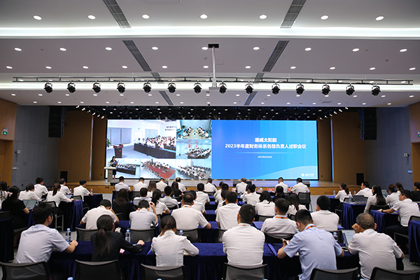 為全面總結(jié)2023年上半年管理工作,回顧工作成果、復(fù)盤(pán)工作不足、制定工作目標(biāo),6月28日,通威太陽(yáng)能財(cái)務(wù)體系組織成功召開(kāi)2023半年度管理干部年終述職會(huì),通威太陽(yáng)能電池及組件財(cái)務(wù)、招標(biāo)、信息及財(cái)務(wù)共享中心團(tuán)隊(duì)全員參會(huì),通威太陽(yáng)能副總經(jīng)理宋梟出席會(huì)議并作重要指示。