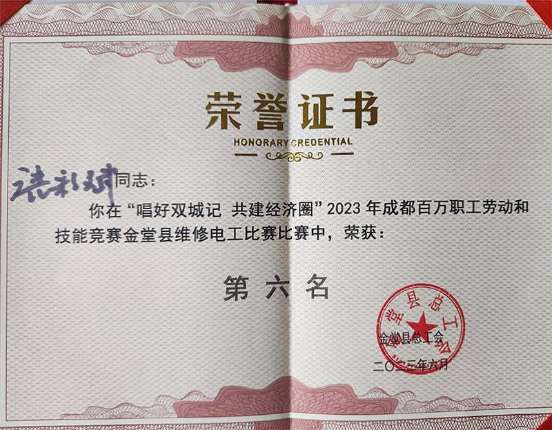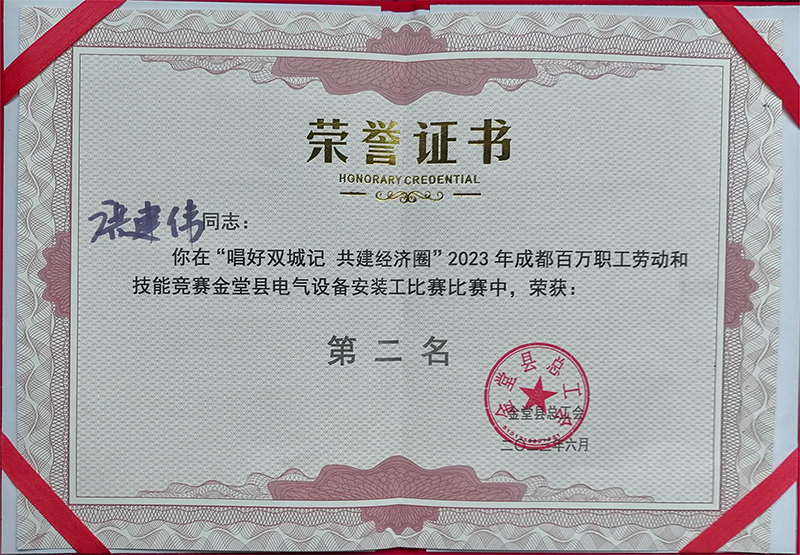 6月20日,為助力成渝地區(qū)雙城經(jīng)濟(jì)圈建設(shè),充分發(fā)揮職業(yè)技能競賽示范、引領(lǐng)、帶動作用,為區(qū)域建設(shè)提供更堅強有力的技能人才支撐,“唱好雙城記?共建經(jīng)濟(jì)圈”2023年成都百萬職工勞動和技能競賽金堂縣電氣設(shè)備安裝工、維修電工比賽在四川省金堂縣職業(yè)高級中學(xué)舉辦。通合新能源2名員工分別榮獲電氣設(shè)備安裝工項目二等獎和維修電工項目三等獎。
