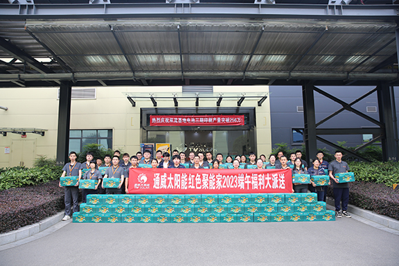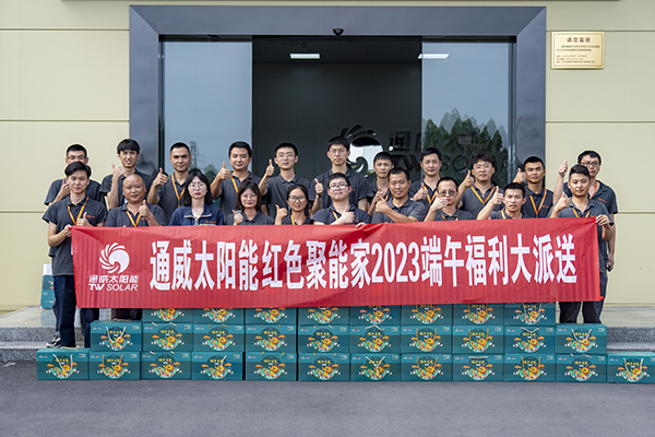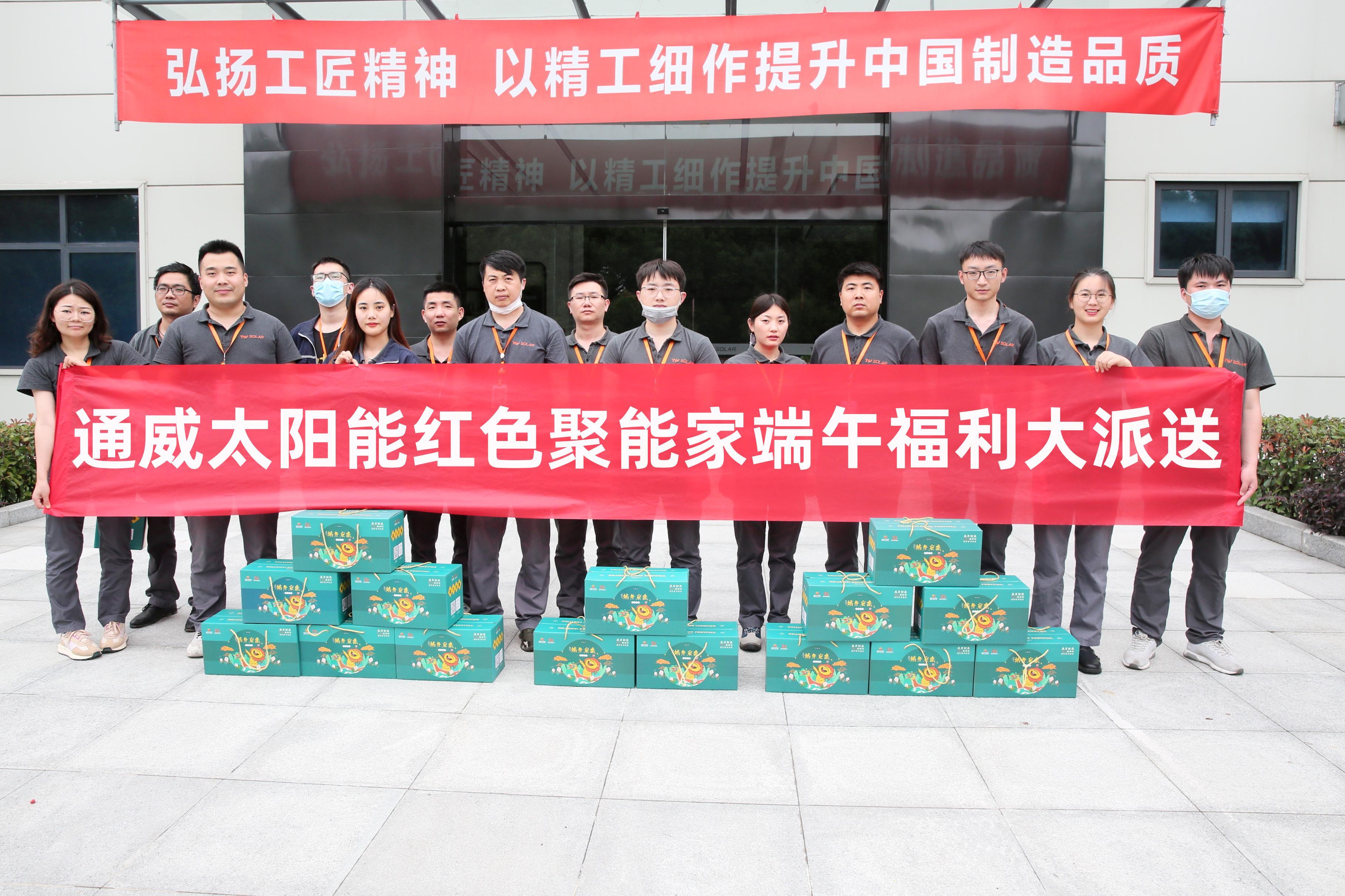 又逢一年端午至,片片粽葉裹溫情。在端午佳節(jié)來(lái)臨之際,為弘揚(yáng)傳統(tǒng)文化,感謝全體員工為公司發(fā)展付出的辛勤努力,6月19日至20日,通威太陽(yáng)能紅色聚能家開(kāi)展端午福利大派送活動(dòng),為廣大職工送去了滿滿的關(guān)愛(ài)和濃濃的節(jié)日祝福。