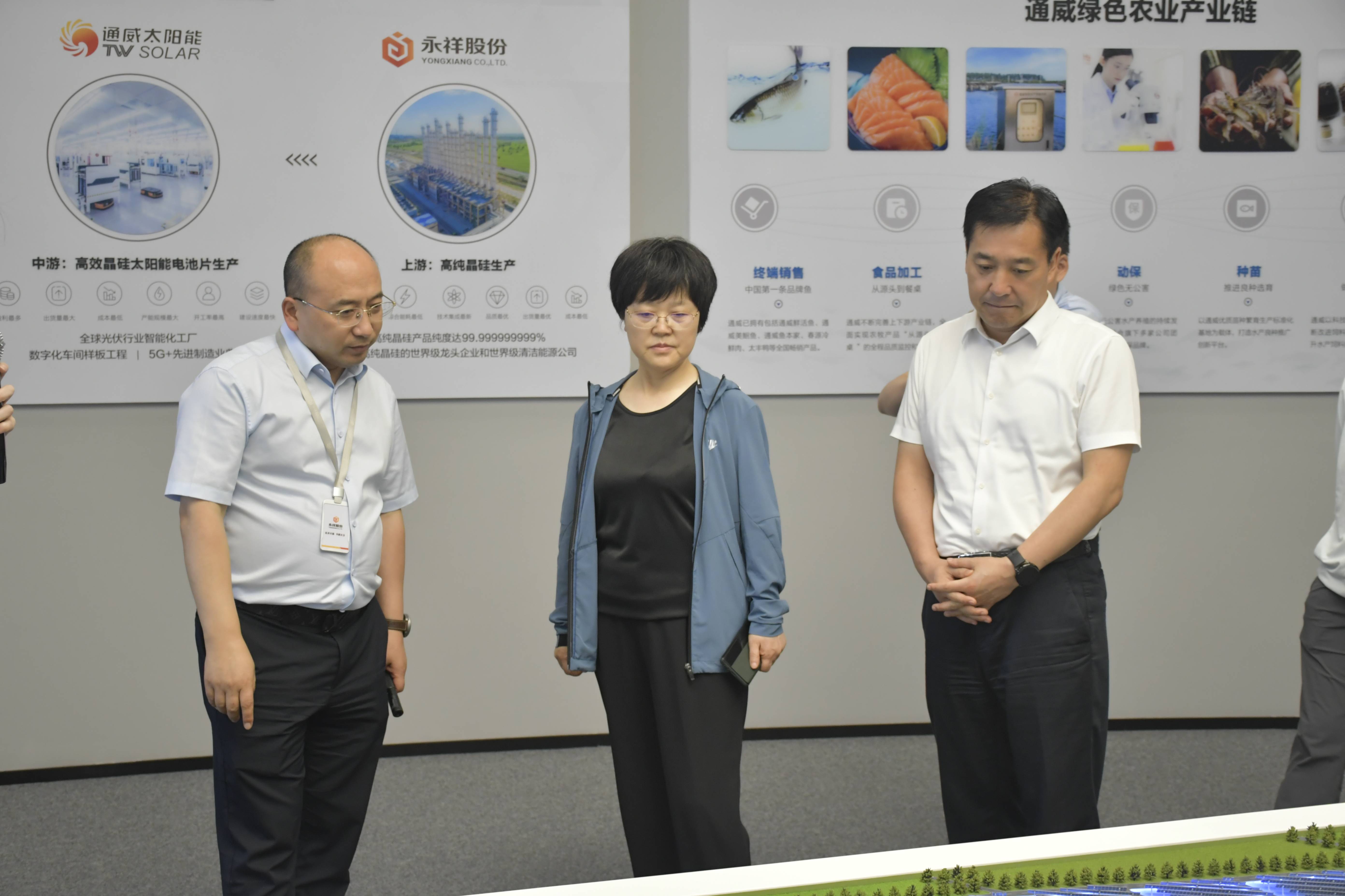 6月16日,四川省發展改革委副主任楊昕調研永祥,樂山市發展改革委主任吳小怡,五通橋區委書記劉勇,區委常委、區政府副區長胡璽陪同,永祥股份總經理助理兼戰略發展部部長代長宏熱情接待。