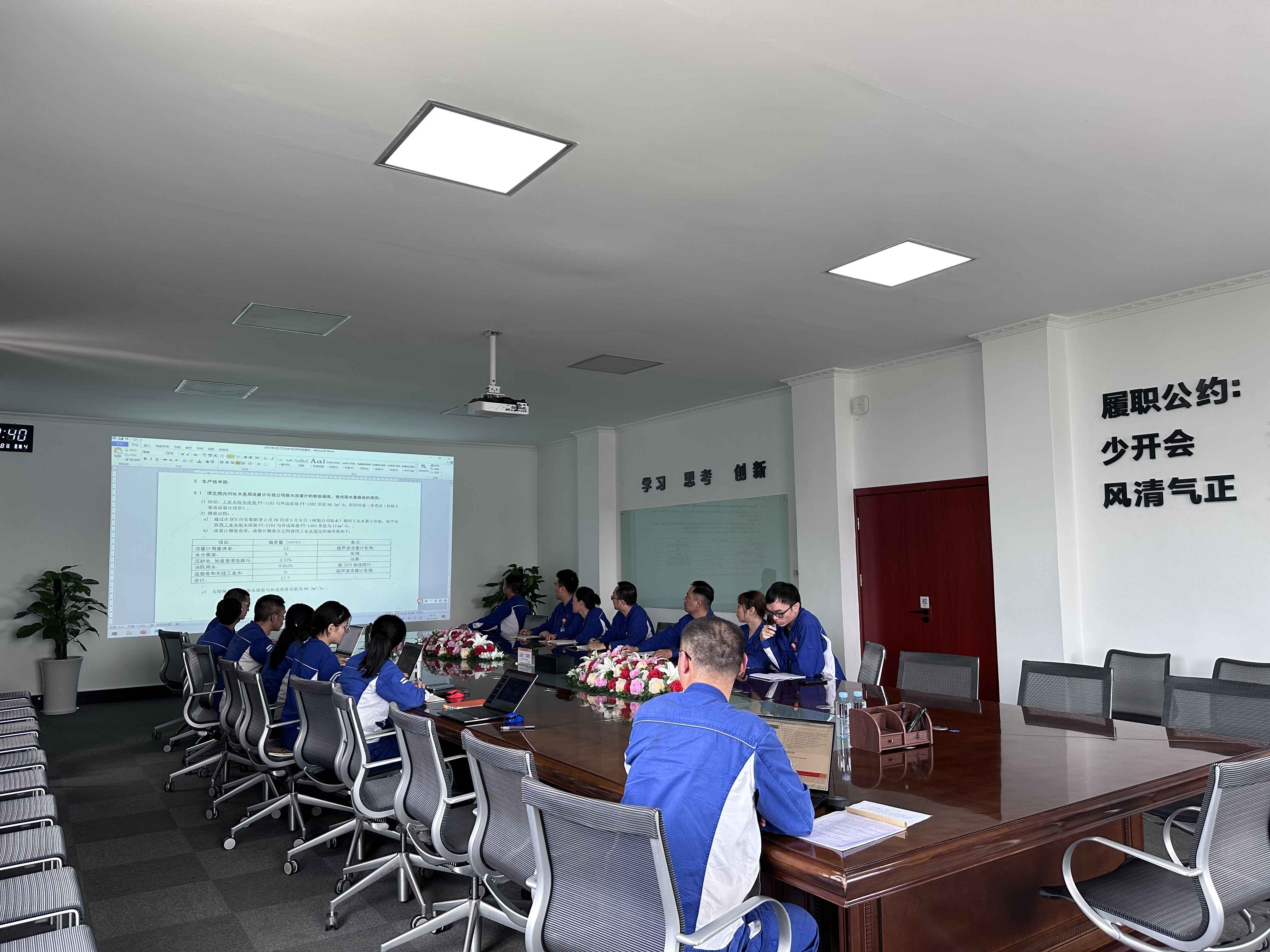 本次會議主要圍繞工藝安全分享、工藝運行跟蹤反饋、5月工藝指標分析抽查車間工藝技術人員對指標的理解、工藝新技術學習等方面開展。生產技術部各工藝專業人員重點對所管轄車間工藝指標控制情況進行全面分析,對不足之處提出改進建議,并組織大家學習“離子膜電解槽電耗成本降低措施的探討”新工藝的學習。針對工藝控制上存在的偏差,文總與參會人員共同討論交流,查找根源,制定改進措施。
