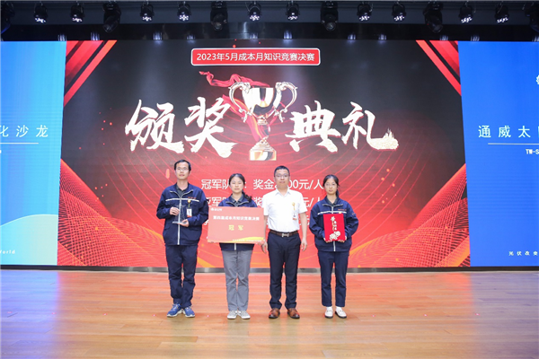 在本屆成本月競賽中,各基地有力組織,來自廠部的選手組合成隊在基地完成激勵的初賽最終決出基地冠軍代表隊參與本次知識競賽決賽。決賽現場,各支隊伍圍繞“開源節流促發展,挖潛增效創輝煌”的主題,通過計時搶答展開激烈角逐。各支隊伍全神貫注投入其中,認真聽題,踴躍作答,展現了積極向上的通威精神與風采。最終,經過三輪激烈角逐,彭山基地代表隊勇奪冠軍、眉山基地代表隊榮獲亞軍、通合項目代表隊獲季軍。