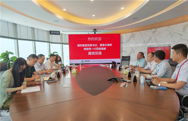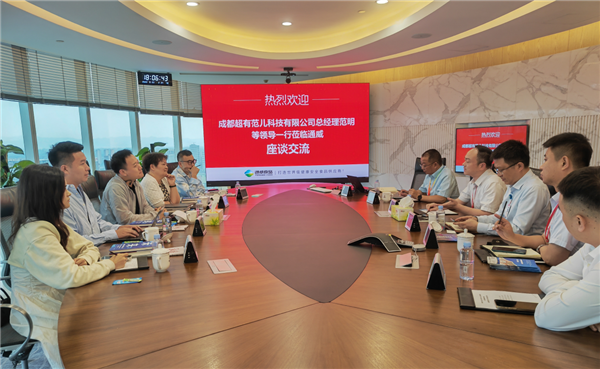 5月23日,成都超有范兒科技有限公司總經理范明、四川和顏悅健康管理有限公司總經理何群一行蒞臨通威參觀交流,通威食品總經理陳波熱情接待并座談。