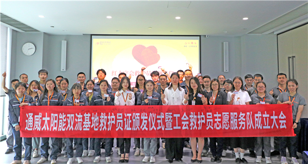 通威太陽能雙流基地工會組織舉辦紅十字會救護員證頒發儀式暨工會救護員志愿服務隊成立大會