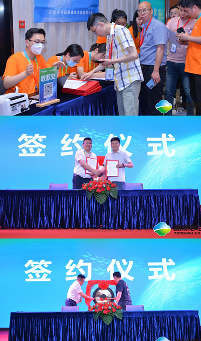 現(xiàn)場(chǎng),通威食品副總經(jīng)理薛峰闡述了通威食品水產(chǎn)產(chǎn)業(yè)鏈發(fā)展情況,并宣貫本次產(chǎn)品發(fā)布會(huì)重磅福利訂貨政策,將發(fā)布會(huì)現(xiàn)場(chǎng)氛圍推向高潮,訂單紛至沓來,客戶排隊(duì)繳款,現(xiàn)場(chǎng)簽約產(chǎn)品超過10萬件!