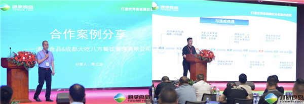 成都大吃八方餐飲管理有限公司執(zhí)行總裁蔣正全、天津九拾九米董事長李自彬分享與通威合作經(jīng)歷,攜手通威,財(cái)富共贏。