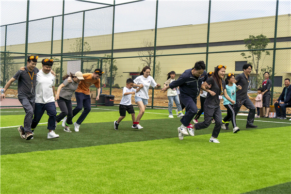 參觀結束,一場別開生面的親子運動會在眉山基地運動場展開。活動主要分為一圈到底、摸石頭過河、兩人三足等游戲,大、小朋友們齊心協力,爭奪榮譽與精美獎品,歡聲笑語在運動場上回蕩,彼此間的距離進一步拉近。在家庭用餐環節,三五個小家庭自由結對,共同品嘗分享公司精心準備的營養美食,每一幀都是溫馨與歡樂。隨著用餐的結束,本次家庭同樂日活動順利落下帷幕。