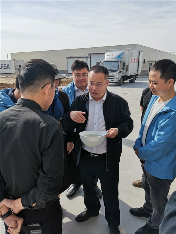5月8日,通威股份農牧總裁、通威農發總經理郭異忠赴海壹種苗東營基地檢查指導工作,通威學習中心執行副校長張紅纓、通威漁業對蝦工廠化養殖負責人李倫佳、青島海壬總經理于明超、通威漁業財務組長趙仁杰等領導隨行,海壹種苗總經理王昌翰、海壹種苗北方大區負責人黃明及主要干部全程陪同。