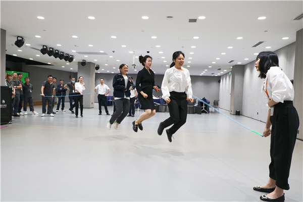 青年員工代表們體驗跳大繩