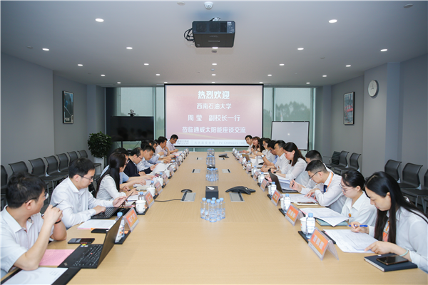 座談線上,陳總首先對(duì)西南石油大學(xué)一行的到來(lái)表示熱烈歡迎。會(huì)上,雙方就人才培養(yǎng)、校企合作等方面問(wèn)題進(jìn)行了深入交流。周校長(zhǎng)詳細(xì)介紹了學(xué)院的發(fā)展情況、人才輸出以及專業(yè)優(yōu)勢(shì)。曾書(shū)記對(duì)公司投產(chǎn)以來(lái)所取得的優(yōu)秀成績(jī)給予高度贊賞并表示,希望雙方加強(qiáng)深度合作,為優(yōu)秀畢業(yè)生搭建優(yōu)質(zhì)的實(shí)習(xí)、就業(yè)平臺(tái),同時(shí)衷心祝愿通威太陽(yáng)能能夠抓住新能源行業(yè)發(fā)展的良好態(tài)勢(shì),不斷創(chuàng)新,提高行業(yè)影響力。