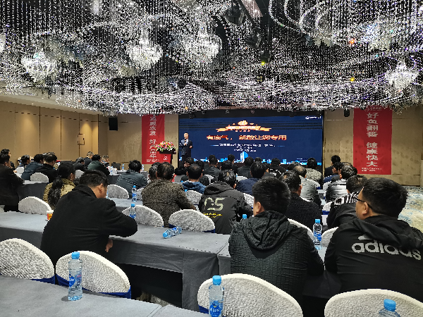 通威農發水產研究所營養師盧義以《賺錢才是硬道理》為主題,從當前草魚養殖現狀分析、養殖破局之道、養殖增效方案三個方面闡述,讓廣大養殖戶朋友對目前面臨的養殖現狀有了充分的認知。他提出用科學的養殖技術,希望廣大養殖戶朋友們能在風云變幻的養殖浪潮中獲得更高效益,做好養殖管理,從而降低養殖風險,滿滿的干貨讓在場的新老客戶收獲頗豐。