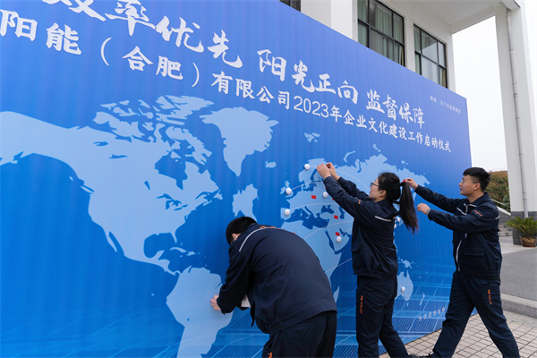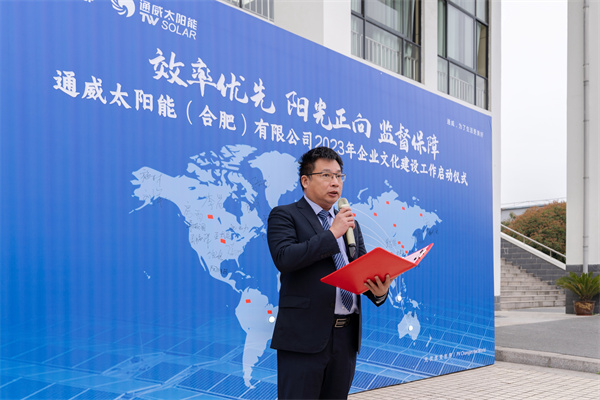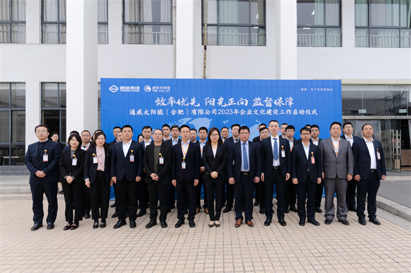 為積極響應(yīng)集團(tuán)企業(yè)文化建設(shè)要求,3月31日,通威太陽(yáng)能(合肥)有限公司舉行2023年企業(yè)文化建設(shè)工作啟動(dòng)儀式,通威股份總裁助理、通威太陽(yáng)能(合肥)有限公司總經(jīng)理蕭圣義,通威太陽(yáng)能(合肥)有限公司副總經(jīng)理翟緒錦出席,各部門(mén)負(fù)責(zé)人、員工代表共計(jì)60余人現(xiàn)場(chǎng)參加。
