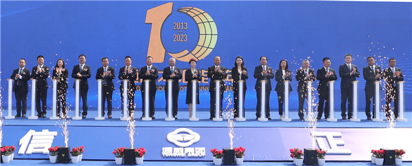 儀式上,劉漢元主席帶領集團、股份管理總部及各體系高管共同上臺啟動了通威集團2023年企業文化建設工作暨通威太陽能十年慶系列活動。