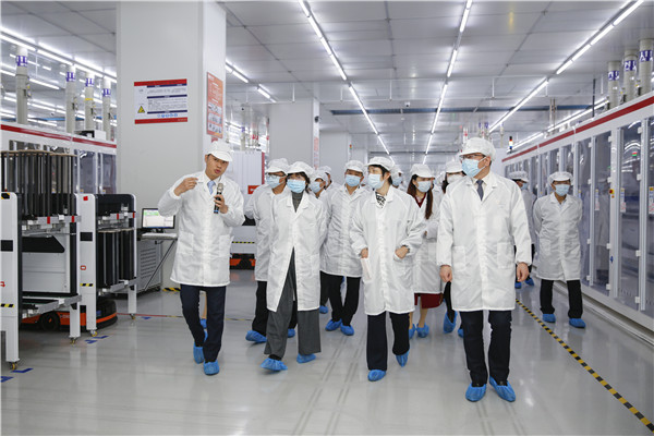調(diào)研團(tuán)一行參觀通威太陽(yáng)能雙流基地智能制造展廳