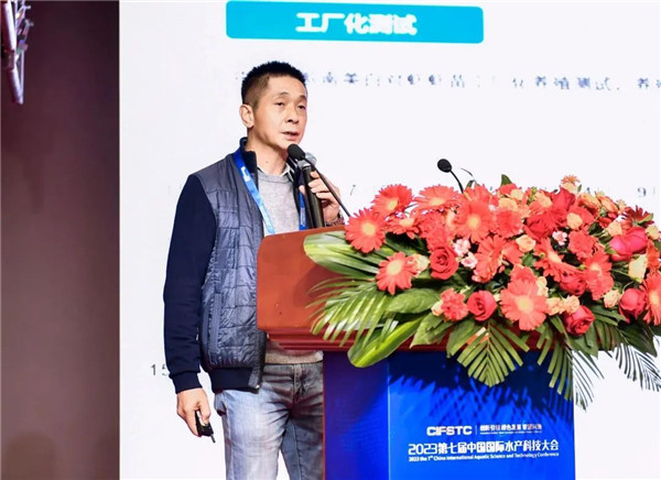 助力水產(chǎn)發(fā)展》主題演講中表示,在“雙碳”目標(biāo)大背景下,企業(yè)轉(zhuǎn)型綠色低碳發(fā)展方向是大勢(shì)所趨。在水產(chǎn)養(yǎng)殖模式向工廠化養(yǎng)殖轉(zhuǎn)變過(guò)程中,室內(nèi)恒溫系統(tǒng)將為水產(chǎn)養(yǎng)殖提產(chǎn)增效、反季節(jié)蓄養(yǎng)、越冬、避暑提供有力保障。作為專注太陽(yáng)能光熱、空氣源熱泵研發(fā)的公司,四季沐歌推出了適合水產(chǎn)養(yǎng)殖的空氣源熱泵+多能耦合技術(shù)解決方案,賦能水產(chǎn)養(yǎng)殖綠色、高效發(fā)展。 廣東溢多利生物科技股份有限公司技術(shù)中心副主任黃志毅作主題演講 廣東溢多利生物科技股份有限公司技術(shù)中心副主任黃志毅作了題為《“博落回散”在水產(chǎn)動(dòng)物上的研究與應(yīng)用》的主題演講,并表示,博落回散是首個(gè)應(yīng)用特征圖譜技術(shù)進(jìn)行質(zhì)量控制的植物源養(yǎng)殖投入品,堅(jiān)持藥材標(biāo)準(zhǔn)、提取標(biāo)準(zhǔn)“兩個(gè)標(biāo)準(zhǔn)”和原料、工藝、檢驗(yàn)“三個(gè)規(guī)程”,嚴(yán)格控制產(chǎn)品生產(chǎn)全過(guò)程,保證產(chǎn)品質(zhì)量穩(wěn)定。通過(guò)草魚、黃鱔、南美白對(duì)蝦等水產(chǎn)品養(yǎng)殖試驗(yàn),博落回散具有改善肝膽健康、改善腸道健康、降低死亡率等效果,為水產(chǎn)品健康成長(zhǎng)保駕護(hù)航。 江蘇正昌糧機(jī)股份有限公司水產(chǎn)中心總經(jīng)理王華峰作主題演講 江蘇正昌糧機(jī)股份有限公司水產(chǎn)中心總經(jīng)理王華峰在《水產(chǎn)設(shè)備節(jié)能提效的關(guān)鍵技術(shù)及應(yīng)用》主題演講中表示,高效節(jié)能的設(shè)備成為飼料企業(yè)經(jīng)營(yíng)中利潤(rùn)的源頭之一,正昌專業(yè)團(tuán)隊(duì)始終將節(jié)能的理念貫徹到每臺(tái)設(shè)備、每個(gè)工藝環(huán)節(jié),通過(guò)正昌水產(chǎn)實(shí)驗(yàn)中心對(duì)裝備和飼料加工的模擬、分析、評(píng)估和驗(yàn)證,并迭代優(yōu)化設(shè)備和工程的節(jié)能點(diǎn),在客戶生產(chǎn)應(yīng)用中取得了良好的節(jié)能效益。 江蘇豐尚智能科技有限公司研究院產(chǎn)品經(jīng)理李丹作主題演講 江蘇豐尚智能科技有限公司研究院產(chǎn)品經(jīng)理李丹在題為《飼料原料及養(yǎng)殖模式變化下的蝦料技術(shù)》的主題演講中表示,南美白對(duì)蝦作為目前水產(chǎn)養(yǎng)殖里的重要品類,近20年年復(fù)合增長(zhǎng)率超20%。為應(yīng)對(duì)魚粉、豆粕等減量替代以及新型養(yǎng)殖模式對(duì)更高品質(zhì)飼料的需求,豐尚創(chuàng)新的解決方案能有效滿足新時(shí)期對(duì)蝦養(yǎng)殖的需求,助力飼料企業(yè)、養(yǎng)殖的降本增效。 佛山市梁氏水產(chǎn)科技有限公司總經(jīng)理劉惠青作主題演講 佛山市梁氏水產(chǎn)科技有限公司總經(jīng)理劉惠青作了題為《“良種·良法”開(kāi)啟鱖魚飼料化新賽道》的主題分享,并表示,與傳統(tǒng)餌料鱖相比,畝產(chǎn)相當(dāng)?shù)那闆r下,飼料鱖產(chǎn)值、利潤(rùn)高,并為淡水工廠化養(yǎng)殖、預(yù)制菜、水產(chǎn)金融產(chǎn)業(yè)提供了支撐點(diǎn)。在馴化育苗方面,飼料鱖市場(chǎng)需求大、生產(chǎn)周期短、利潤(rùn)高,已然成為全國(guó)爭(zhēng)投的第一苗種。梁氏水產(chǎn)與中山大學(xué)產(chǎn)、學(xué)、研深度合作,專注新品種開(kāi)發(fā)與技術(shù)革新,以種質(zhì)、育苗技術(shù)、品牌、渠道為下游提供良種與良法,解決鱖魚產(chǎn)業(yè)難點(diǎn)。 廣州旭路行新材料有限公司總工程師曹明澈作主題演講 廣州旭路行新材料有限公司總工程師曹明澈在《工廠化養(yǎng)殖的熱管理》主題演講中表示,市場(chǎng)上火爆的網(wǎng)紅水產(chǎn)品種年產(chǎn)量普遍在30萬(wàn)噸以下,供應(yīng)缺口嚴(yán)重,增長(zhǎng)潛力巨大,未來(lái)20年會(huì)呈現(xiàn)多品種階梯式或螺旋式快速增長(zhǎng)。鄉(xiāng)村振興和內(nèi)循環(huán)背景下,大批央企和地方國(guó)企紛紛組建農(nóng)業(yè)集群,進(jìn)入相對(duì)高門檻、高附加值和高成長(zhǎng)性的特種漁業(yè)養(yǎng)殖市場(chǎng)。消費(fèi)需求和產(chǎn)業(yè)發(fā)展的雙引擎下,特種水產(chǎn)種苗繁育、設(shè)施化智能化漁業(yè)對(duì)水體溫度可控提出了更高的要求。以旭路行暖漁寶熱水膜為代表的新型節(jié)能環(huán)保、方便可靠的加熱產(chǎn)品和解決方案,未來(lái)會(huì)有更廣闊的發(fā)展空間。 海南中正水產(chǎn)科技有限公司技術(shù)總監(jiān)陳剛作主題演講 海南中正水產(chǎn)科技有限公司技術(shù)總監(jiān)陳剛作了題為《創(chuàng)新引領(lǐng) 打造一流水產(chǎn)南繁育種基地》的主題演講,并表示,水產(chǎn)品改善了人民食物營(yíng)養(yǎng)結(jié)構(gòu),繁榮了農(nóng)村經(jīng)濟(jì),保障了糧食安全。同時(shí),我國(guó)每年通過(guò)水產(chǎn)養(yǎng)殖合計(jì)從水體移除碳的量達(dá)到350萬(wàn)噸,相當(dāng)于造林150萬(wàn)公頃,為實(shí)現(xiàn)“雙碳”目標(biāo)發(fā)揮了積極作用。水產(chǎn)市場(chǎng)需求量大,行業(yè)大有可為。中正水產(chǎn)依托水產(chǎn)育種優(yōu)勢(shì),布局全國(guó),做強(qiáng)種苗擴(kuò)繁主業(yè)。同時(shí),積極拓展海洋牧場(c