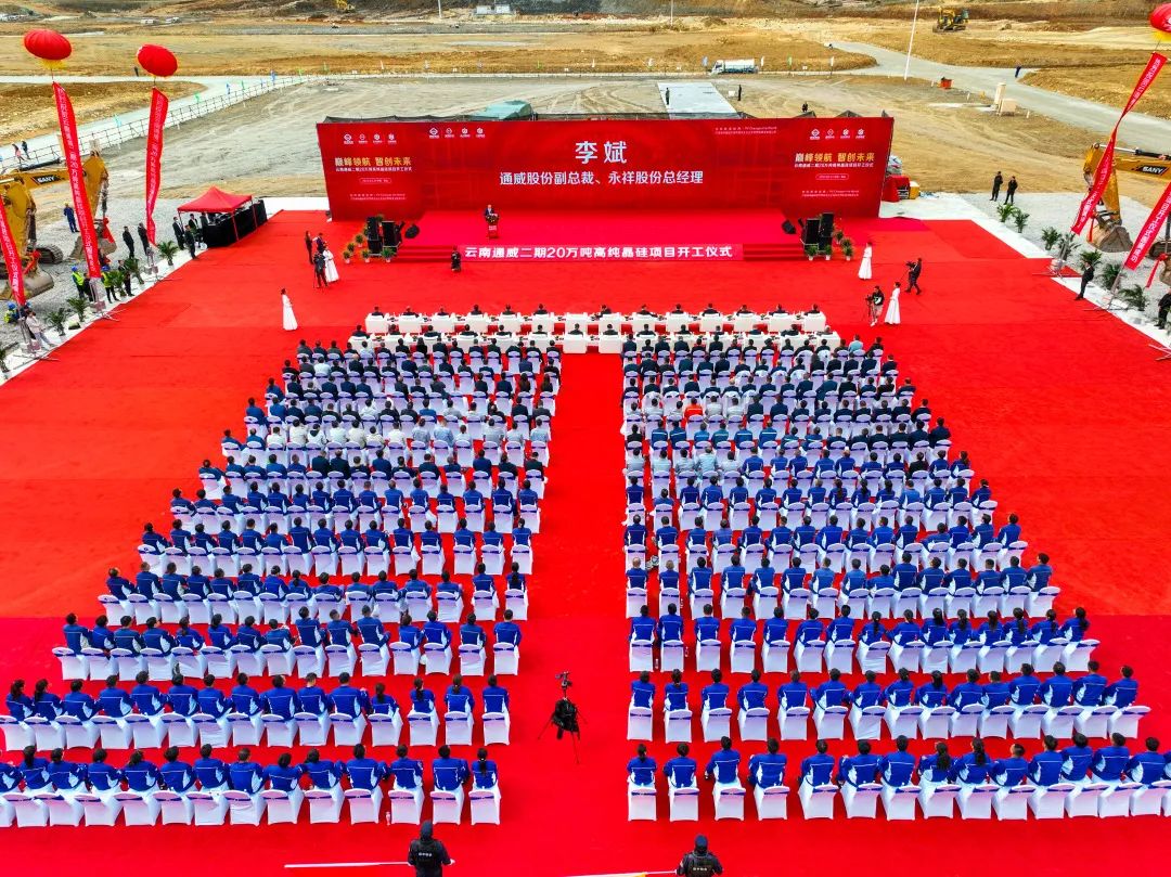 3月21日,云南通威二期20萬噸高純晶硅項目開工儀式在保山市昌寧工業園區隆重舉行。保山市委書記楊軍出席并宣布項目正式開工。保山市委副書記、代理市長陳銳,云南省工信廳副廳長保建彬,保山市人大常委會主任韓開柱,市政協主席朱宏春,市委常委、隆陽區委書記段忠華,市委常委、市委秘書長范喜,副市長成德君,市政府秘書長張志紅,昌寧縣委書記楊斌斌,縣委副書記、縣長范正建,通威股份副總裁、永祥股份總經理李斌,財務總監袁仕華,永祥股份副總經理、云南通威總經理杜炳勝等領導出席并見證開工儀式。云南省、保山市、隆陽區、昌寧縣、保山工業園區相關職能部門,公司業務合作單位,以及永祥股份、云南通威代表參加。