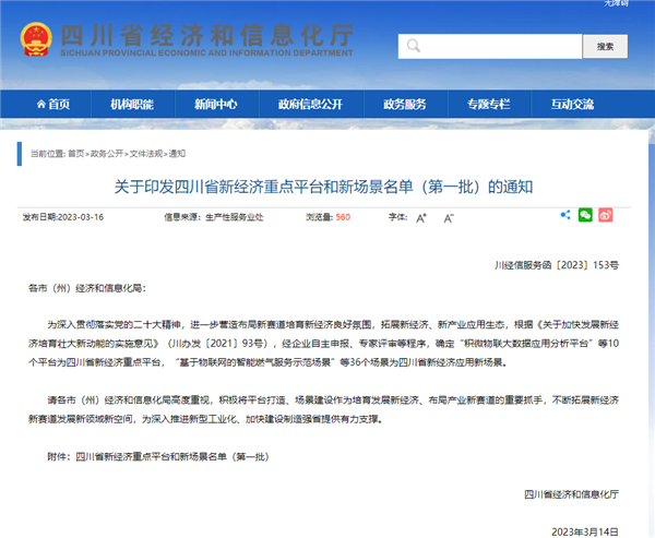 3月16日,四川省經(jīng)濟(jì)和信息化廳官方網(wǎng)站正式公布了《關(guān)于印發(fā)四川省新經(jīng)濟(jì)重點(diǎn)平臺(tái)和新場(chǎng)景名單(第一批)的通知》,通威太陽(yáng)能眉山基地獲評(píng)“四川省新經(jīng)濟(jì)應(yīng)用新場(chǎng)景”。