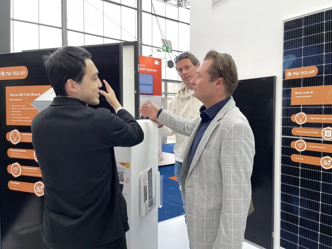 通威作為全球光伏新能源產(chǎn)業(yè)發(fā)展的重要參與者和主要推動力量之一,多年來,依托強(qiáng)勁、完善的產(chǎn)業(yè)鏈,組件產(chǎn)品遠(yuǎn)銷40多個國家和地區(qū),贏得了國際市場的高度認(rèn)可。在本次荷蘭國際太陽能及儲能展會上,通威向荷蘭當(dāng)?shù)匦袠I(yè)客戶介紹了公司高效組件產(chǎn)品,共同探討全球新能源產(chǎn)業(yè)發(fā)展,為全球更多客戶提供高效優(yōu)質(zhì)的通威“智”造與通威方案。
