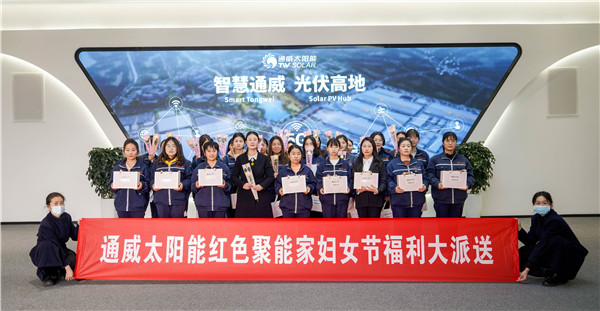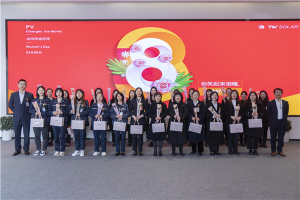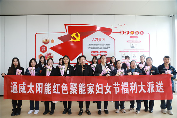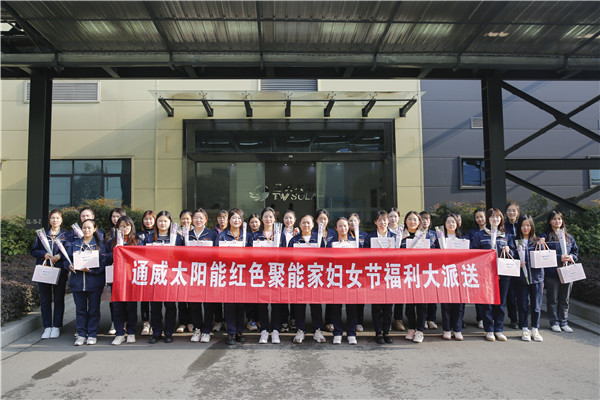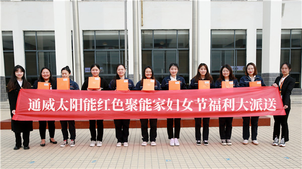 正值”三八“國際勞動婦女節來臨之際,為向辛勤付出的一線女性職工們表示感謝與慰問,提高女職工工作積極性,3月8號,通威太陽能安徽公司、雙流基地、眉山基地、金堂基地、通合項目及彭山基地組織開展“三八婦女節”福利大派送活動,向身邊的每一個“她”致以深深敬意。通合新能源總經理助理羅曉云、通威太陽能眉山基地總經理助理姚騫及各基地工會主席出席活動。