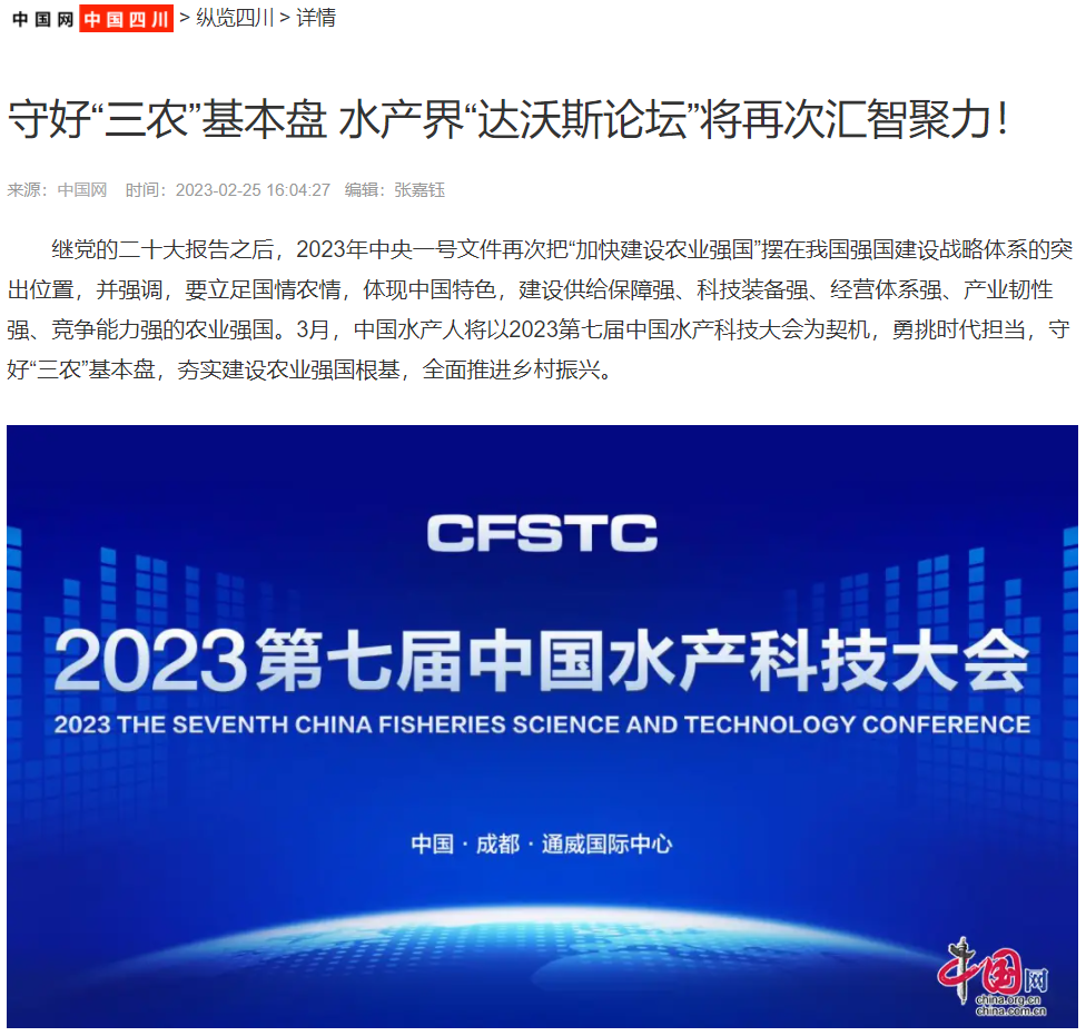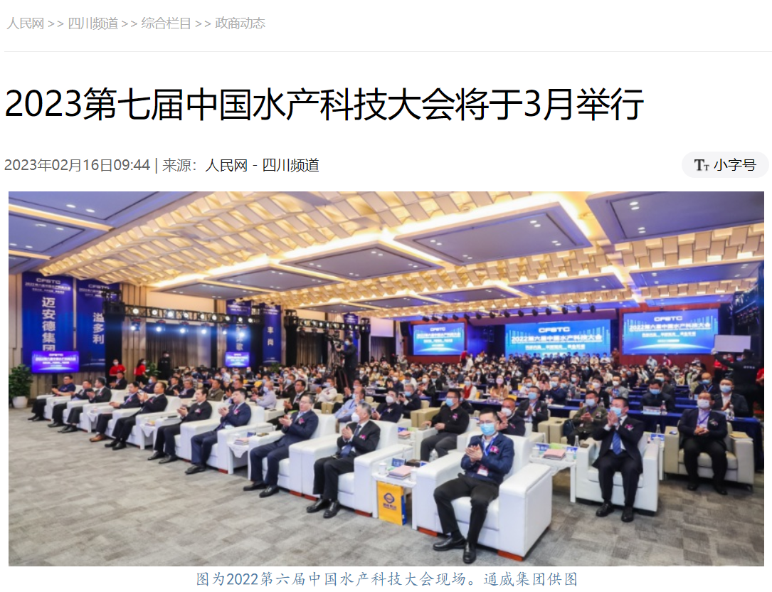 3月,有著“水產界‘達沃斯論壇’”美譽的中國水產科技大會,將在成都通威國際中心迎來第七屆的舉辦。過去六年,人民網、新華網等上百家主流權威媒體及行業媒體對大會關注報道,以最佳角度、更大廣度、更高深度展現水產科技發展成果,傳遞中國水產人的擔當強音。今年,人民網、央廣網、中國網、中國新聞網等再次相繼聚焦,為大會貫徹落實中央“全面推進鄉村振興、加快建設農業強國”文件精神造勢聚氣。