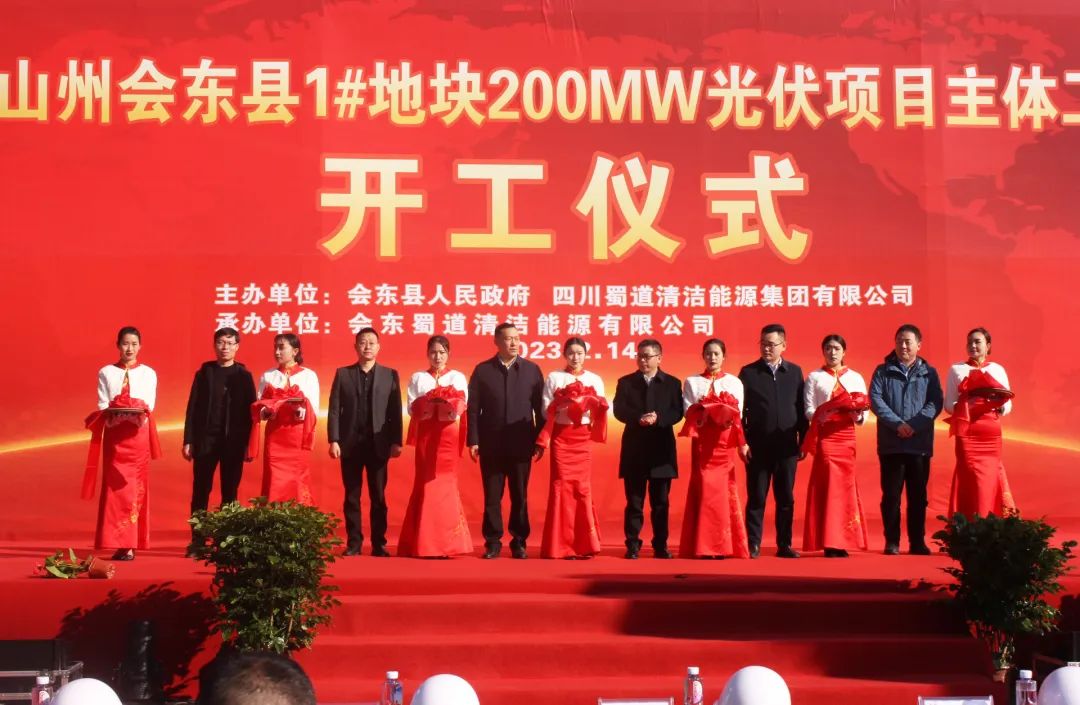 開工當天舉行了隆重的項目開工儀式,會東縣委常委、縣政府常務副縣長李劍及相關政府部門代表,四川蜀道清潔能源集團有限公司財務總監兼會東蜀道清潔能源有限公司執行董事包善祥,四川蜀道清潔能源集團有限公司副總經理廖龍興,通威太陽能組件板塊相關負責人代表及其他各參建單位現場參加。