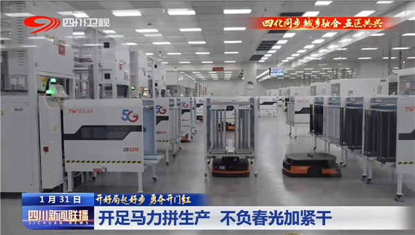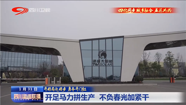 1月31日,四川衛(wèi)視《新聞聯(lián)播》以“開足馬力拼生產(chǎn),不負(fù)春光加緊干”為主題,聚焦通威太陽能春節(jié)節(jié)后復(fù)工生產(chǎn)場景。