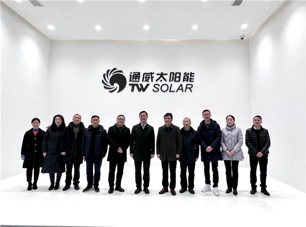 1月14日,峨眉山市委副書記、市長、峨眉山景區管委會主任陳林強一行蒞臨通威太陽能眉山基地參觀調研,通威太陽能眉山基地電池一廠工藝部相關負責人熱情接待。