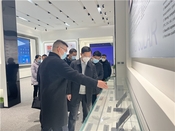 調研團一行首先參觀了通威太陽能智能制造體驗中心,了解通威的發展歷程、發展方向以及雙綠色主業發展模式等情況。隨后,在S1智能制造車間,近距離現場感受通威太陽能“智能工廠”實時運行情況,觀摩通威太陽能高度自動化的生產線、智能化的制造設備,對從硅片到太陽能電池片的生產過程有了更直觀的了解。
