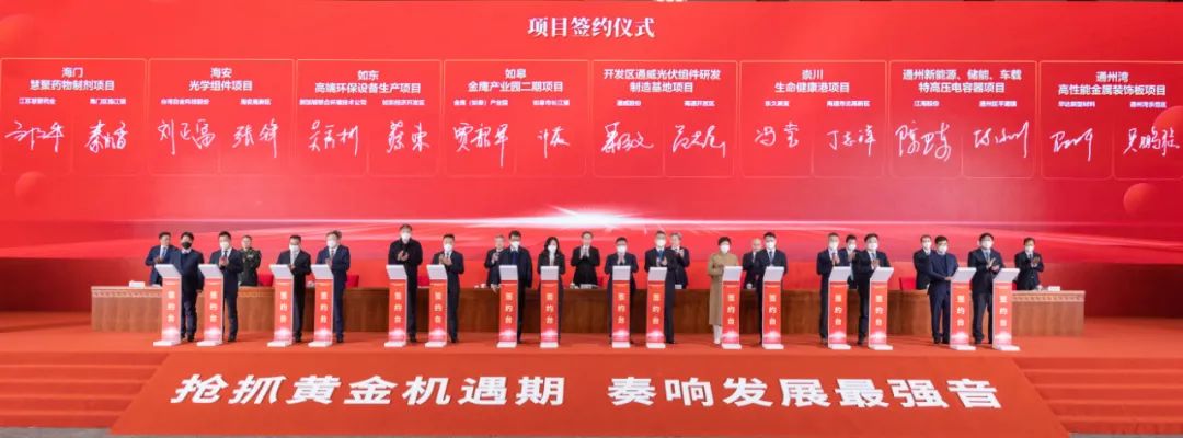 近日,南通市舉行持續(xù)推進(jìn)“招商引資突破年”動員大會暨重大項目簽約儀式。南通市委書記王暉出席會議并講話。當(dāng)天的簽約儀式上,產(chǎn)業(yè)類、總部型、科創(chuàng)類等48個重大項目集中簽約。通威股份總裁助理、通威太陽能(合肥)有限公司總經(jīng)理蕭圣義作為簽約企業(yè)代表受邀出席,并與南通市經(jīng)濟(jì)技術(shù)開發(fā)區(qū)正式簽署《高效光伏組件制造基地項目投資協(xié)議書》。